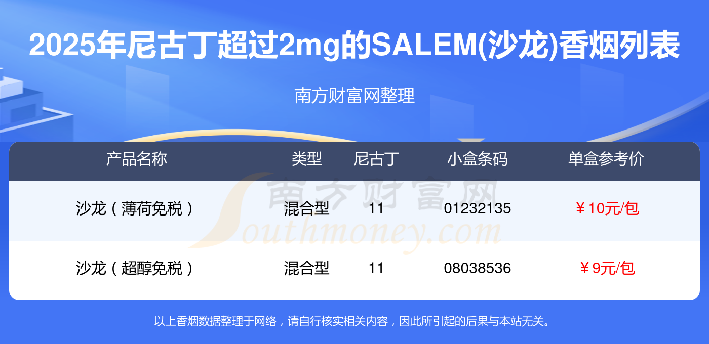 SALEM(沙龙)香烟尼古丁超过2mg的烟2025一览