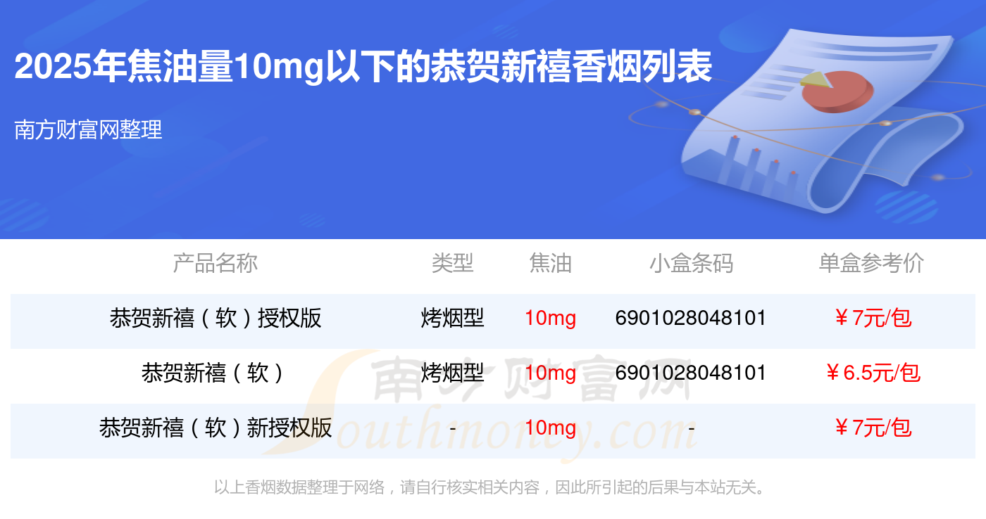 焦油量10mg以下的恭贺新禧香烟有哪些?择烟网为大家整理盘点,分别有: