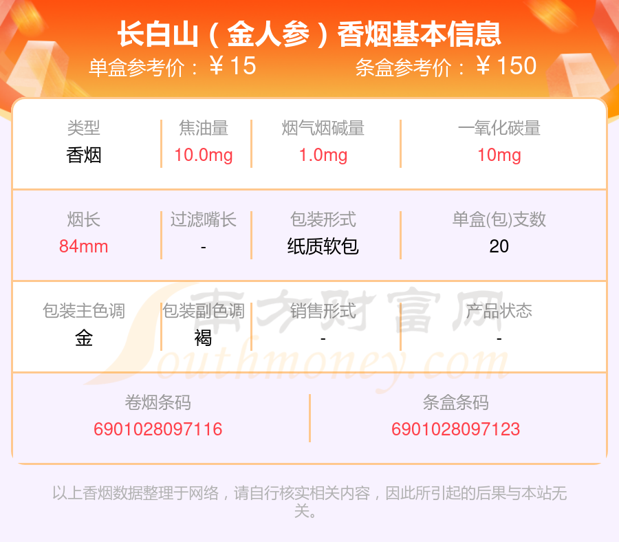 以上香烟数据整理于网络,请自行核实相关内容,因此所引起的后果与本站无关。