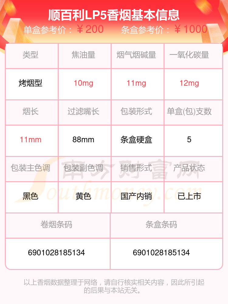 顺百利香烟烟碱量2mg以上的烟分别有顺百利XY5参考价30元/包、顺百利LP5参考价200元/包等。