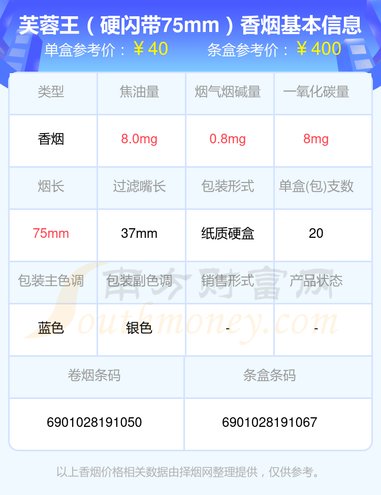 以上香烟价格相关数据仅供参考,温馨提示,吸烟有害健康。