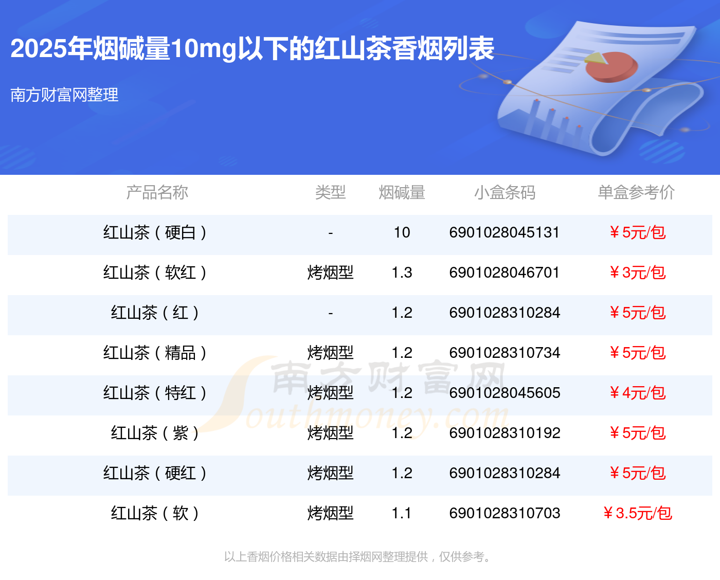 择烟网为大家盘点了红山茶香烟烟碱量10mg以下的,分别有红山茶(硬白)、红山茶(软红)、红山茶(红)、红山茶(精品)、红山茶(特红)、红山茶(紫)、红山茶(硬红)、红山茶(软)等,具体价格如下: