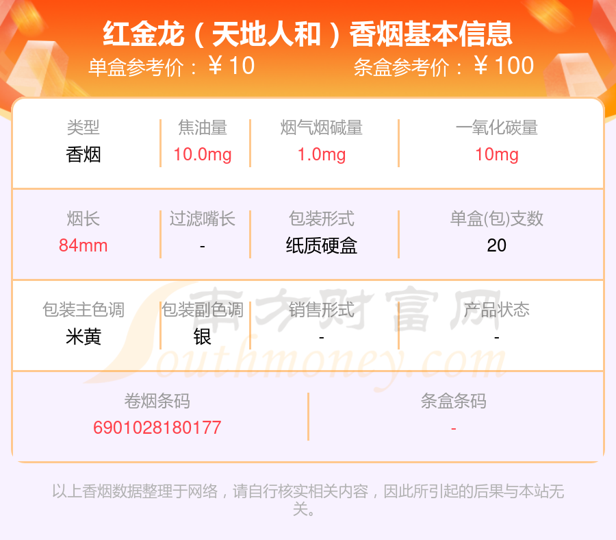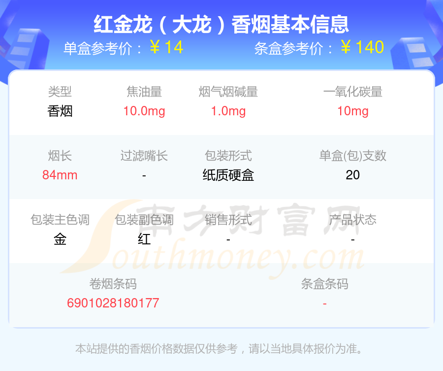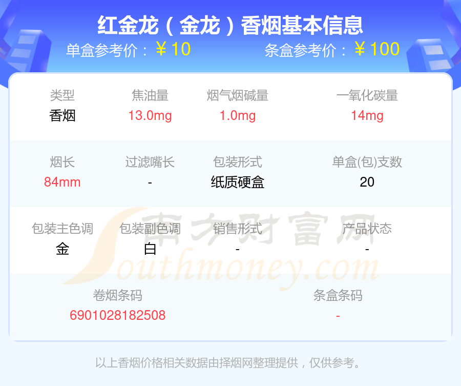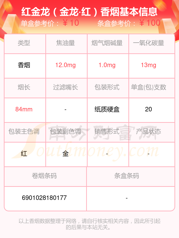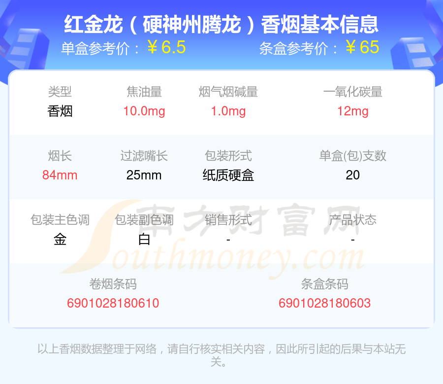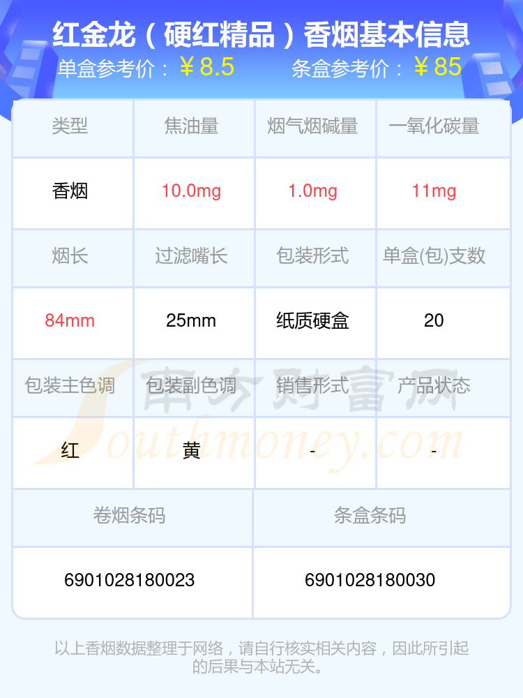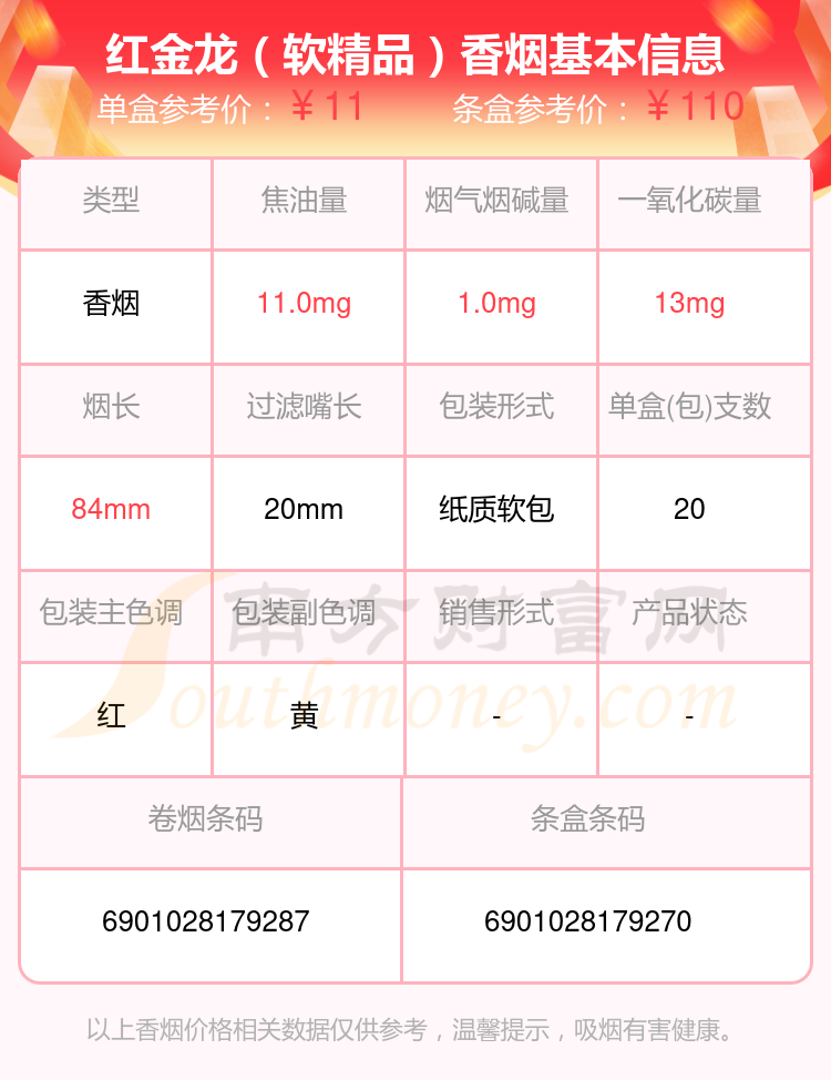 择烟网为大家盘点了红金龙香烟烟碱低于1mg的,分别有红金龙(硬神州腾龙)、红金龙(福瑞祥和)、红金龙(硬明道)、红金龙(天地人和)、红金龙(大龙)、红金龙(金晓楼)、红金龙(金龙)、红金龙(硬红精品)、红金龙(金龙·红)、红金龙(软精品)等,详细价格如下: