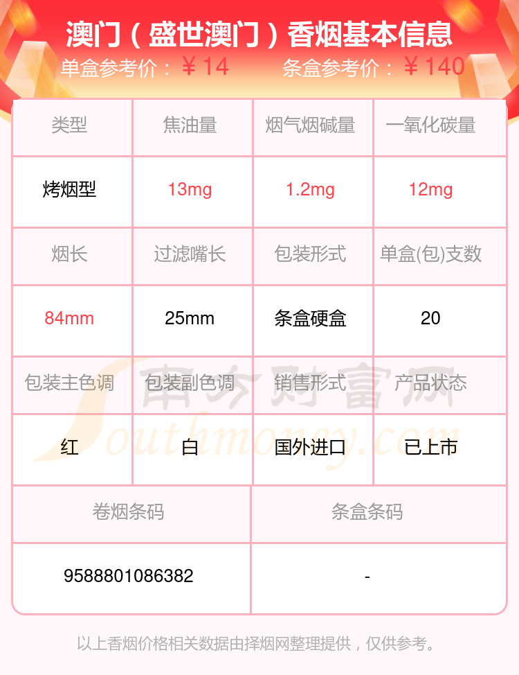 尼古丁量4mg以下的MACAU(澳门)香烟有哪些?择烟网为大家整理盘点,分别有:澳门(盛世澳门)、澳门(VIP)等,具体价格如下: