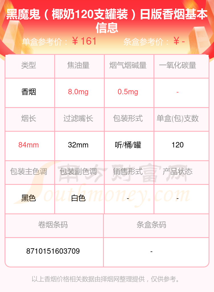 1、黑魔鬼(椰奶120支罐装)日版