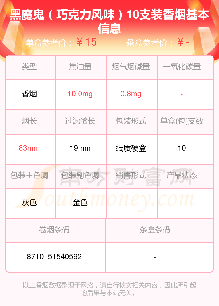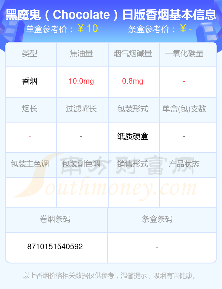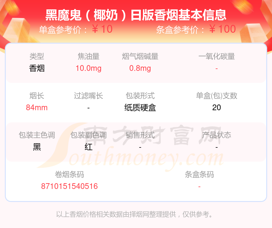择烟网为大家盘点了BLACK DEVIL(黑魔鬼)香烟焦油量8至15mg的,分别有黑魔鬼(椰奶120支罐装)日版、黑魔鬼(120支罐装巧克力风味)日版、黑魔鬼(椰奶)日版、黑魔鬼(巧克力风味)10支装、黑魔鬼(摩卡香草)日版、黑魔鬼(椰奶)10支装、黑魔鬼(蓝莓爆)、黑魔鬼(薄荷香草)日版、黑魔鬼(Chocolate)日版、黑魔鬼(北极薄荷)日版等,详细价格如下:
