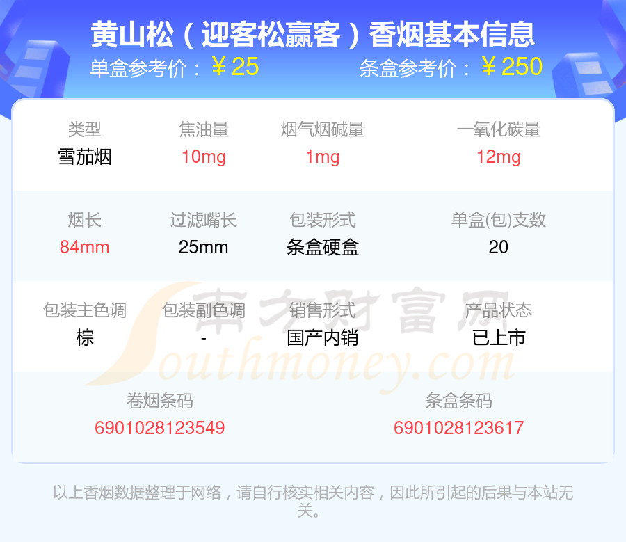 尼古丁量低于1.5mg的黄山松香烟有哪些?择烟网为大家整理盘点,分别有:黄山松(迎客松赢客)、黄山松(回味迎客松)等,具体价格如下: