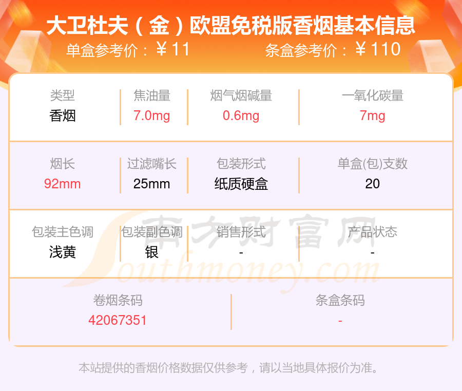以上香烟价格相关数据仅供参考,温馨提示,吸烟有害健康。