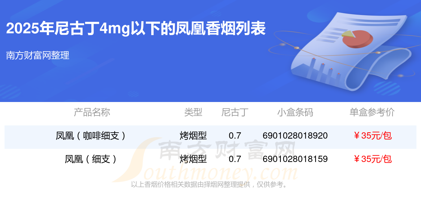 凤凰香烟尼古丁4mg以下的烟都有哪些(2025年)