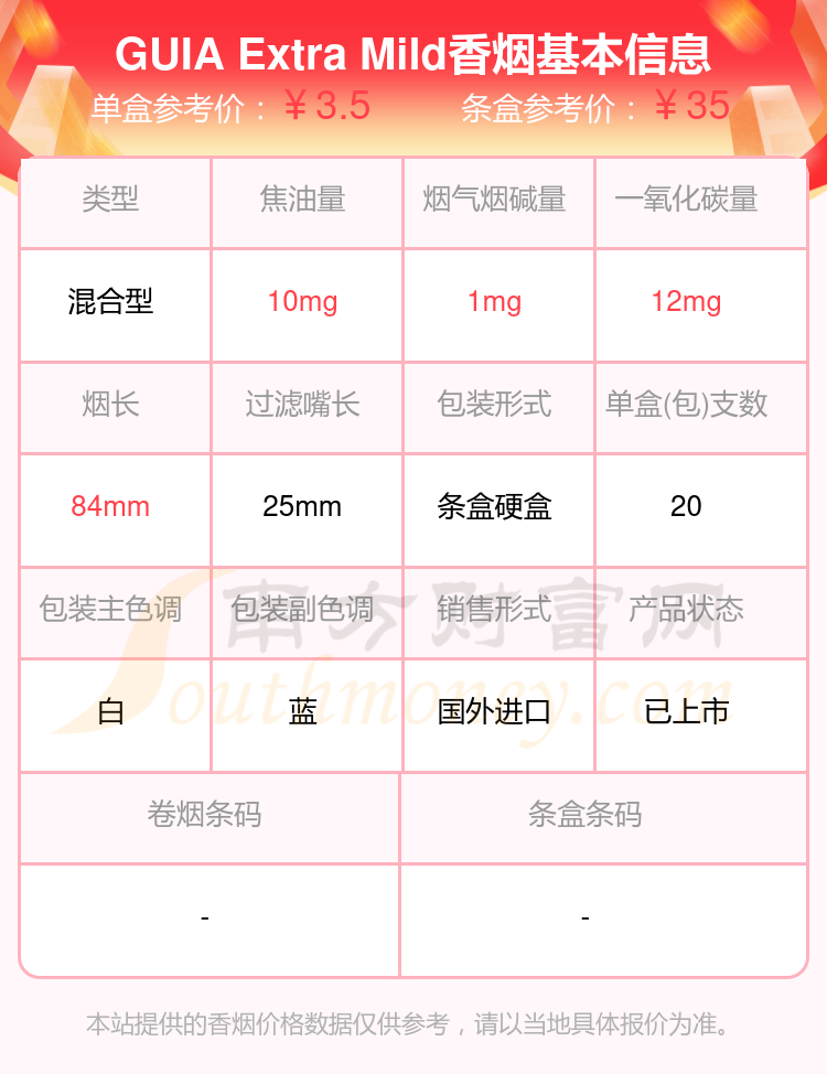 2025年GUIA Extra Mild香烟价格多少钱一条?