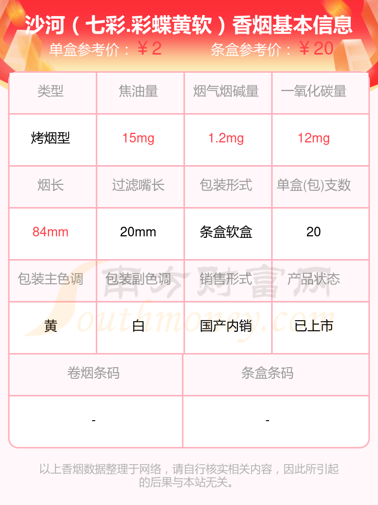 沙河(七彩.彩蝶黄软)单盒参考价:2元