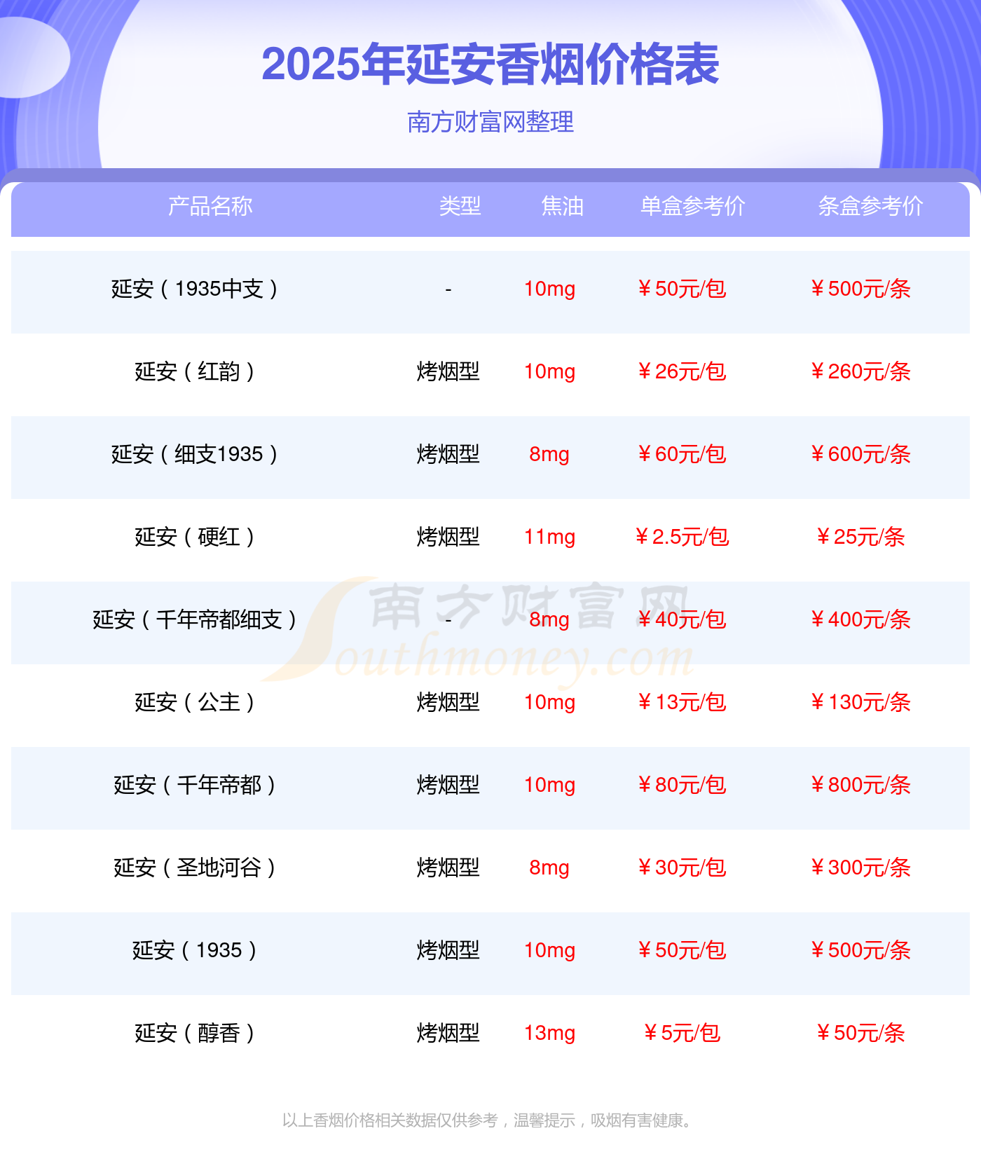 1970年,南泥湾卷烟厂(延安卷烟厂前身)筹建处推出“延安”试制品,1972年开始生产“延安”机制卷烟。1997年“延安”牌香烟获“陕西省名牌产品”,“中国消费者信得过产品”称号。