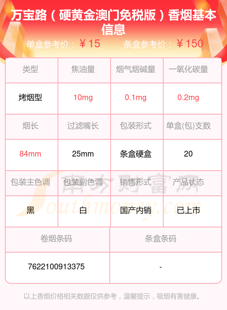 择烟网为大家盘点了金澳门香烟烟碱低于1.5mg的,分别有金澳门、555(金澳门加税)、万宝路(硬黄金澳门免税版)等,具体价格如下: