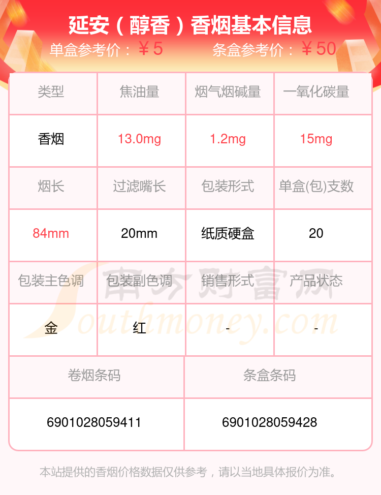 延安(醇香)参考价5.0元/包、延安(精品)参考价13.0元/包、延安(硬青春岁月)参考价20元/包、延安(千年帝都)参考价80.0元/包、延安(特醇)参考价10.0元/包、延安(1935)参考价50.0元/包、延安(金)参考价14.0元/包、延安(红韵)参考价26.0元/包、延安(五星)参考价13.0元/包、延安(世纪经典)参考价23.0元/包等。