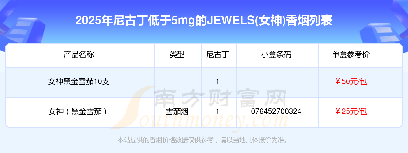 尼古丁低于5mg的JEWELS(女神)香烟2025都有哪些?