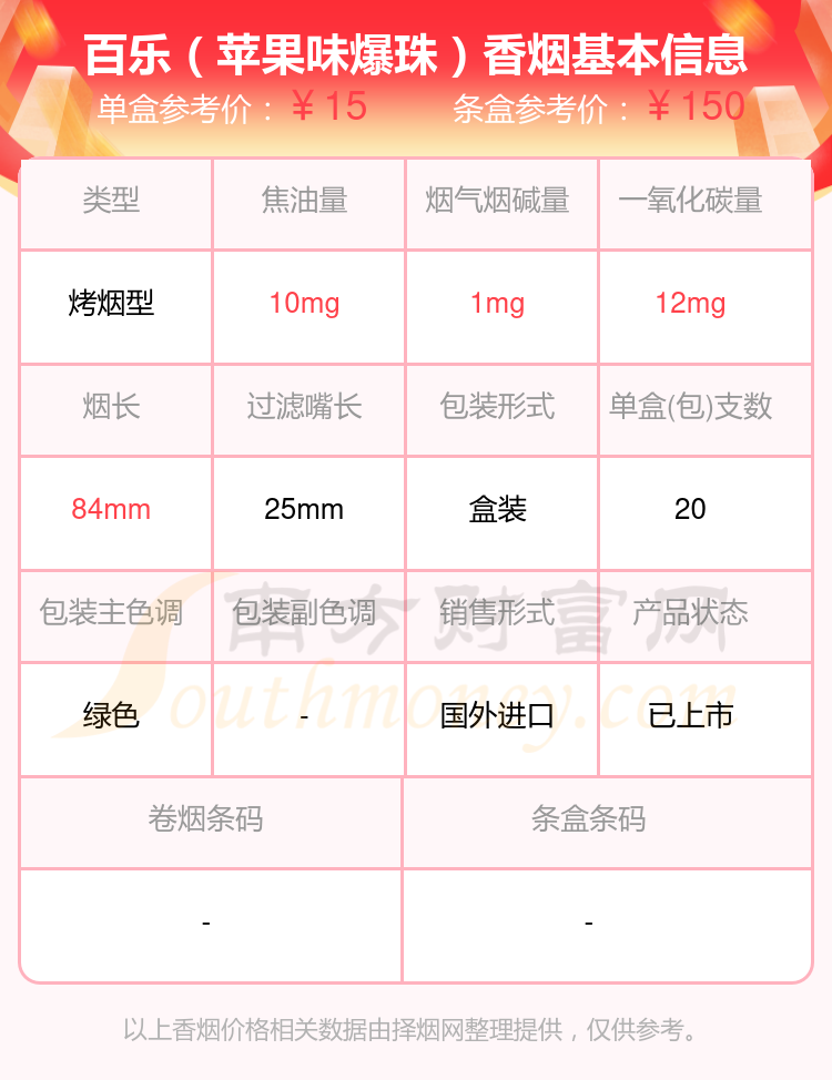 烟碱量1mg到2mg左右的PEEL百乐香烟有哪些?择烟网为大家整理盘点,有百乐(苹果味爆珠)、百乐(葡萄爆珠)等,详细价格如下: