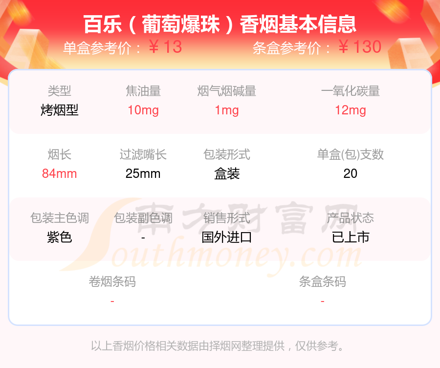 以上香烟价格相关数据仅供参考,温馨提示,吸烟有害健康。