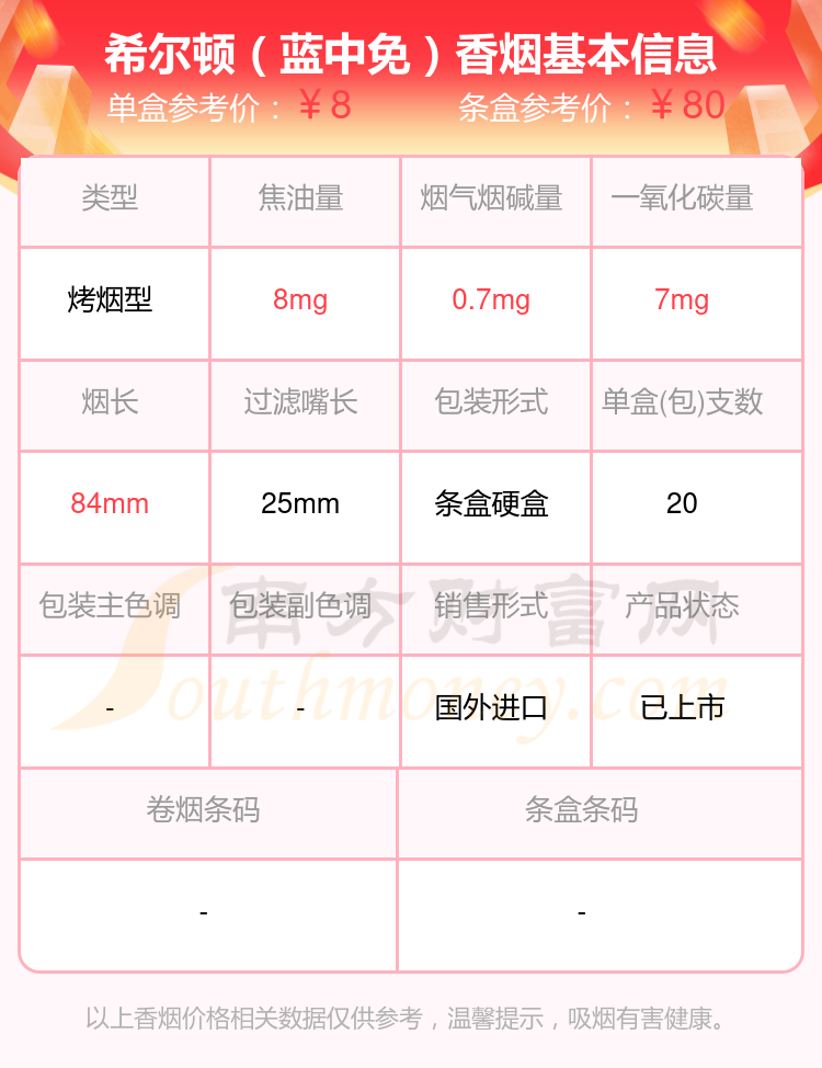 以上香烟数据整理于网络,请自行核实相关内容,因此所引起的后果与本站无关。