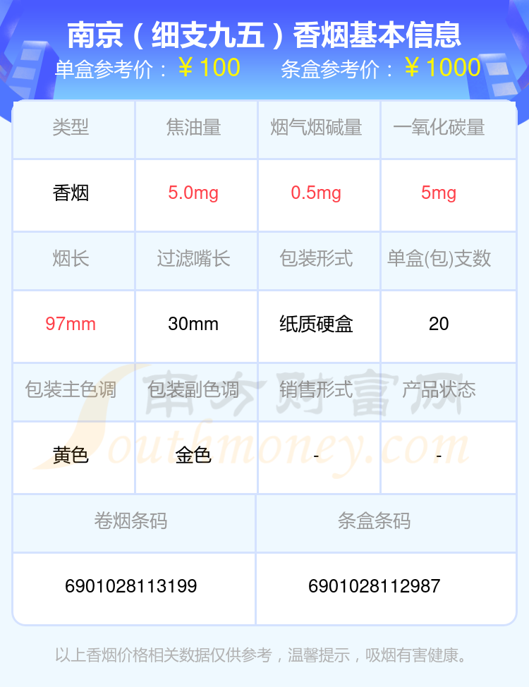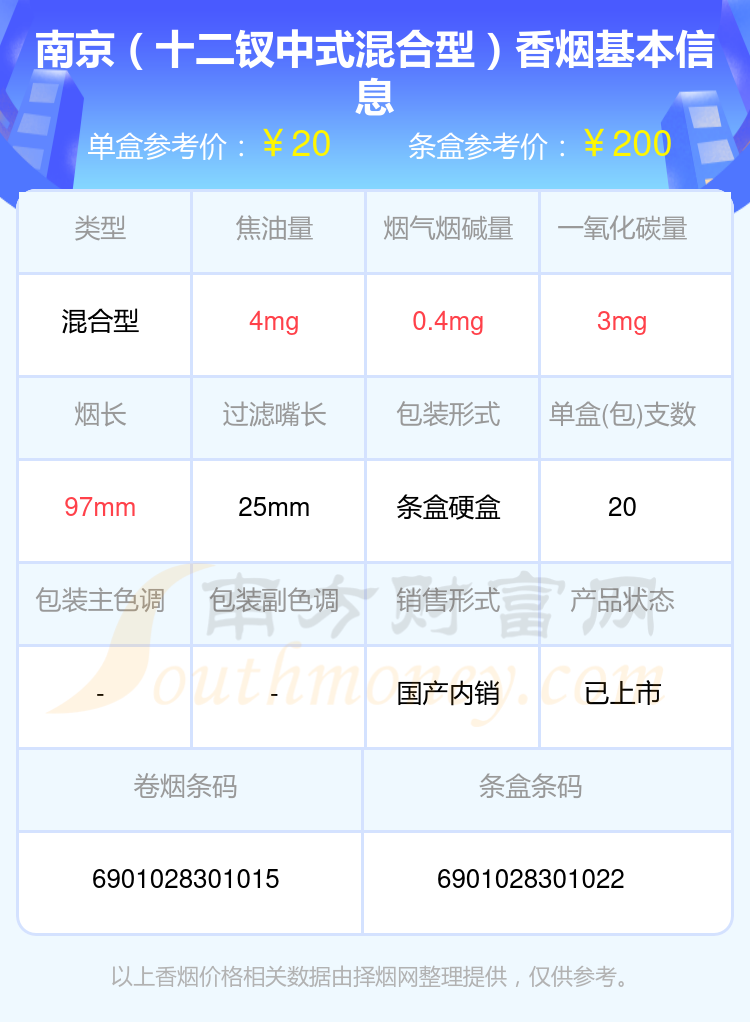 择烟网为大家盘点了南京香烟焦油量5mg以下的,分别有南京(雨花石)、南京(细支九五)、南京(雨花石细支)、南京(红楼卷)、南京(十二钗中式混合型)、南京(梦都尊喜)等,具体价格如下: