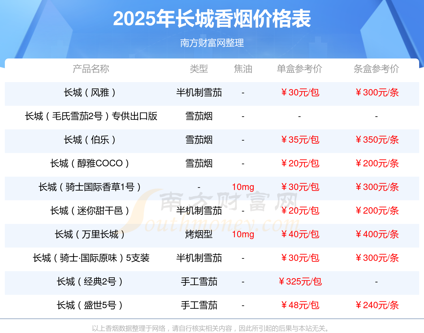 以上香烟价格相关数据由择烟网整理提供,仅供参考。