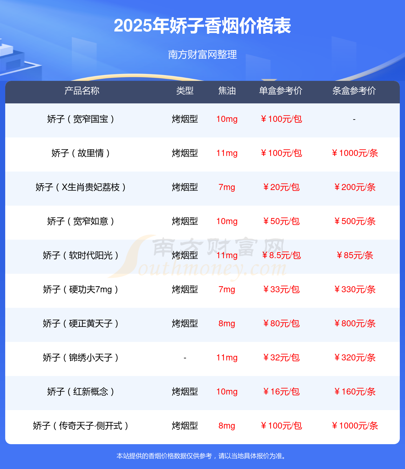 “娇子”由成都卷烟厂于1995年创牌,定位于中高端市场。1999,2001年,“娇子”连续被授予“全国名优卷烟”,2005年,“娇子”商标被认定为“中国驰名商标”。