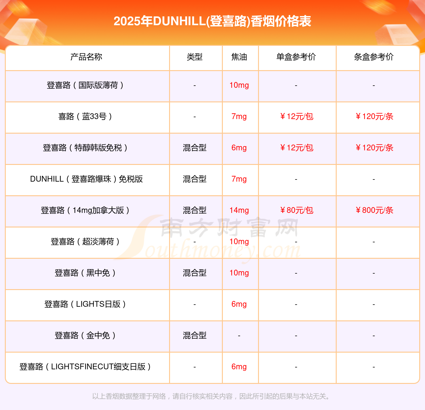 以上香烟价格相关数据由择烟网整理提供,仅供参考。