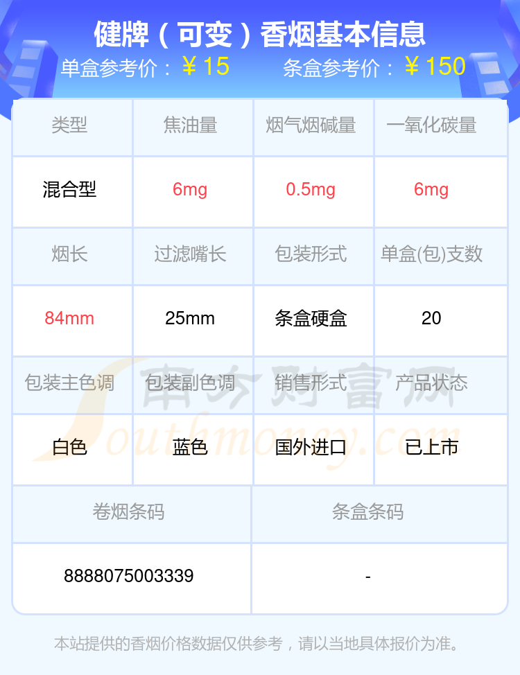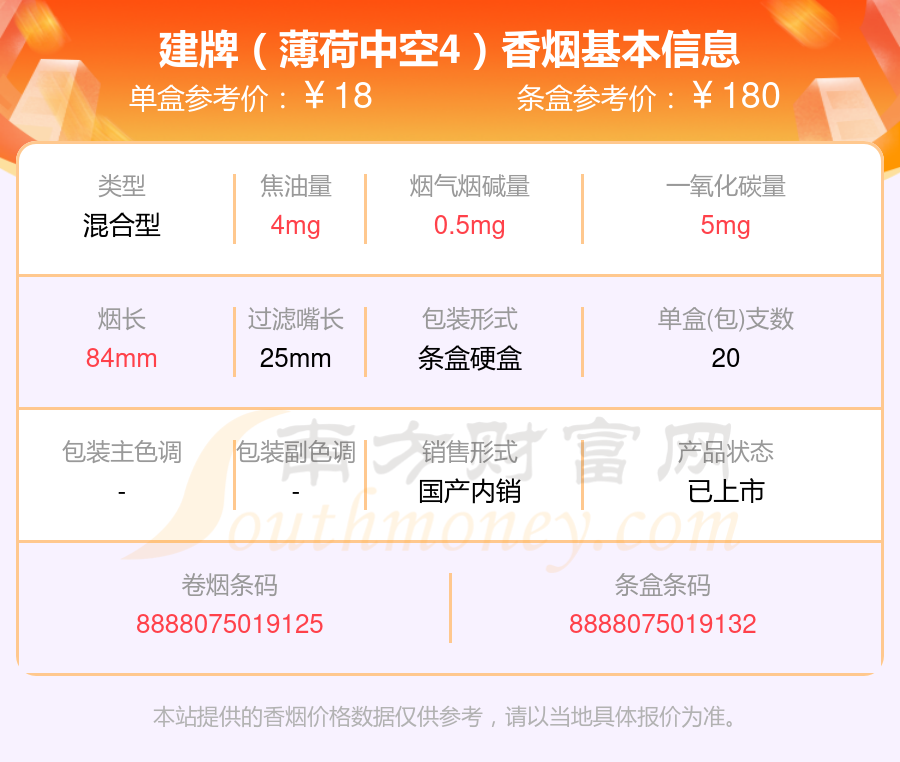 本站提供的香烟价格数据仅供参考,请以当地具体报价为准。