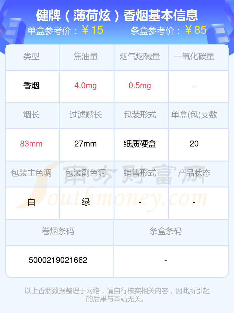 1、健牌(薄荷4)烟草版