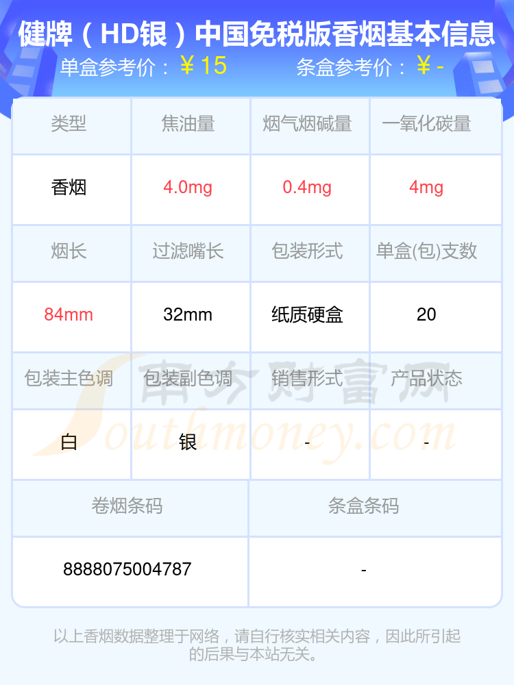 9、健牌(HD银)中国免税版