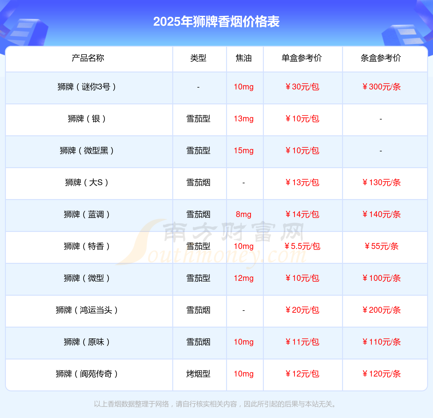 以上香烟价格相关数据由择烟网整理提供,仅供参考。