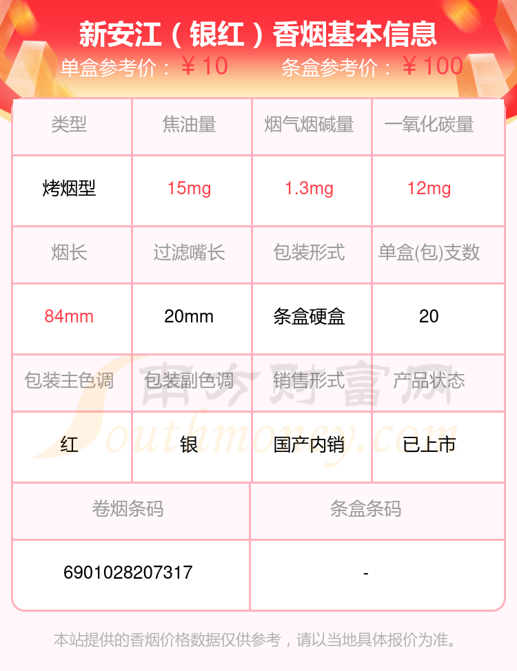 新安江(软)参考价11元/包、新安江(蓝)参考价10元/包、新安江(银红)参考价10元/包等。