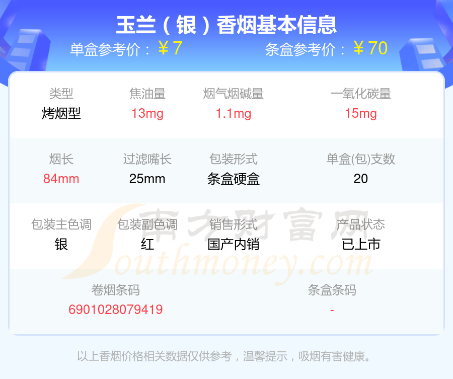 玉兰(金2代)参考价15元/包、玉兰(银)参考价7元/包、玉兰(软)参考价2.5元/包等。