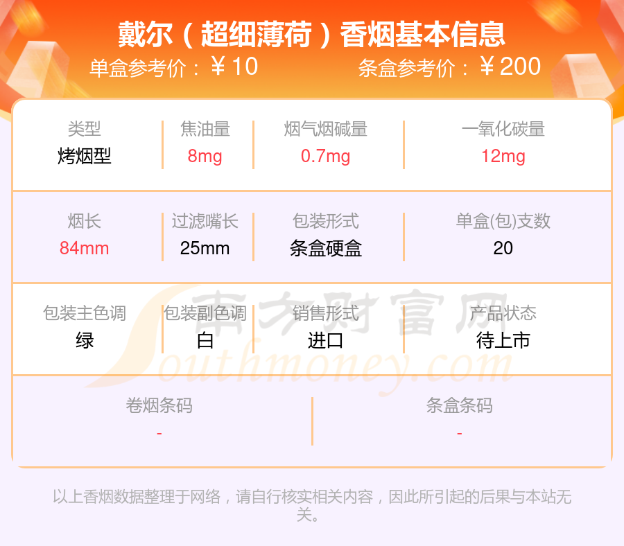 焦油量低于10mg的Deal(戴尔)香烟有哪些?择烟网为大家整理盘点,有戴尔(超细薄荷)、戴尔(超细)等,详细价格如下: