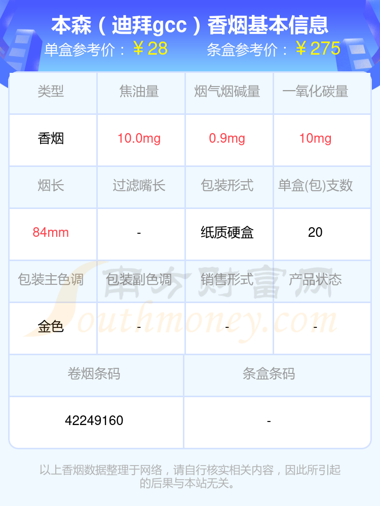 以上香烟数据整理于网络,请自行核实相关内容,因此所引起的后果与本站无关。
