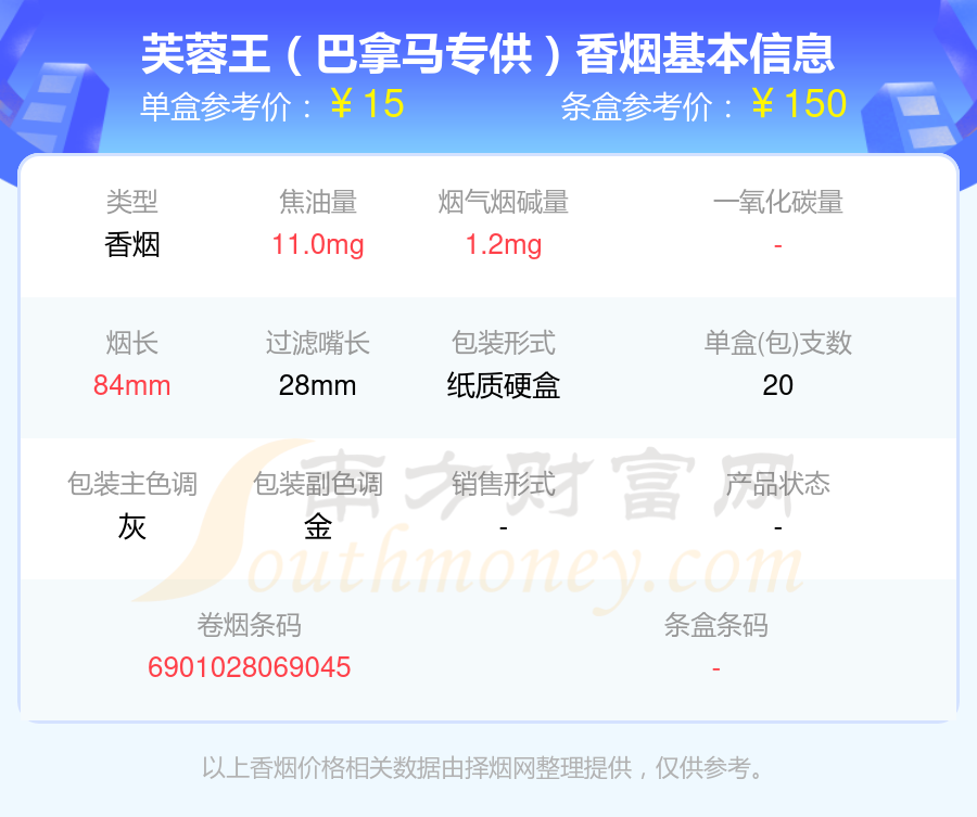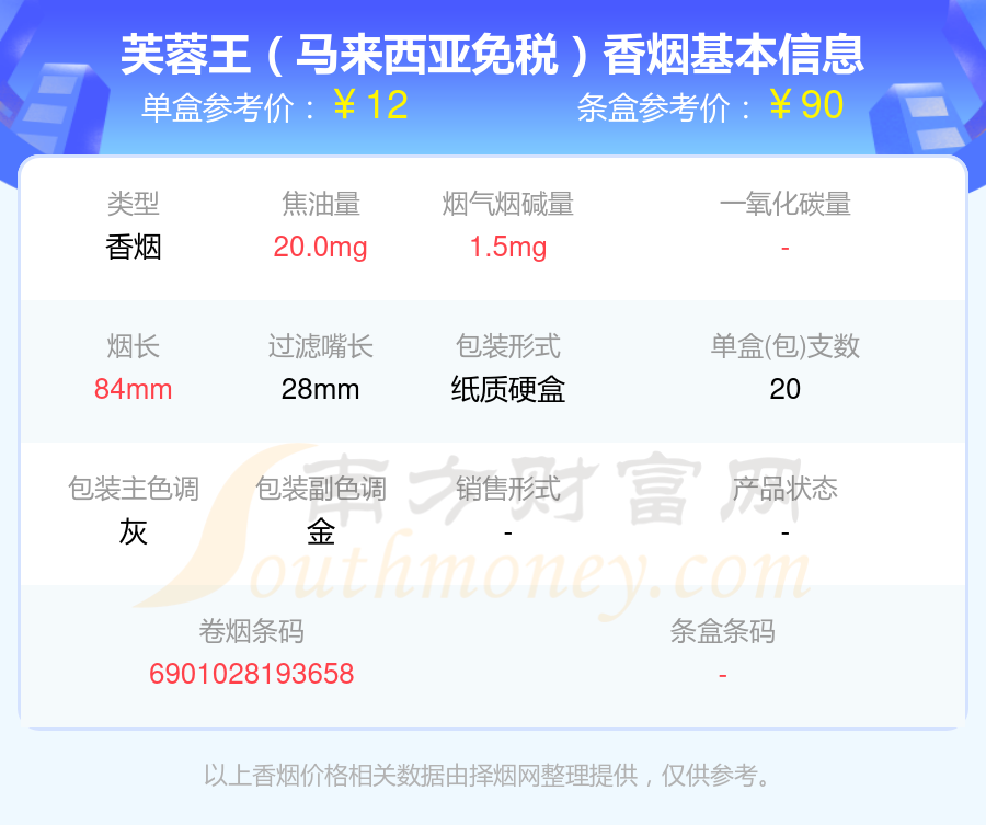 以上香烟价格相关数据由择烟网整理提供,仅供参考。
