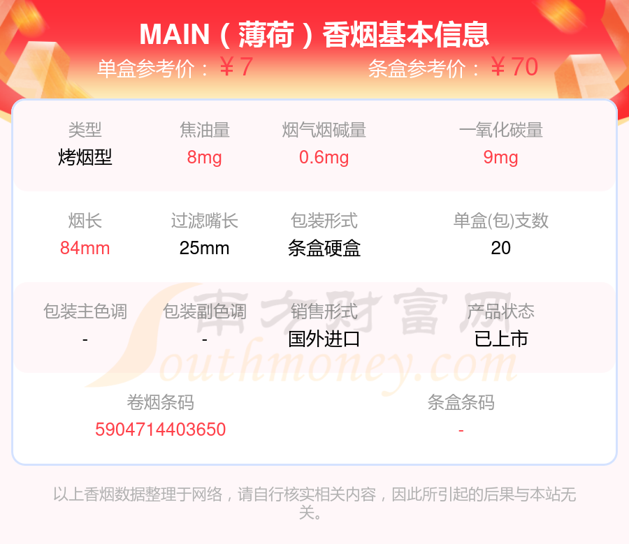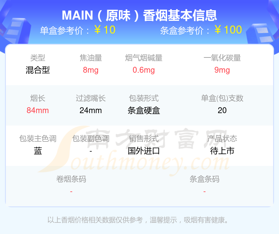烟碱量低于5mg的MAIN香烟有哪些?择烟网为大家整理盘点,有MAIN(薄荷)、MAIN(原味)等,详细价格如下: