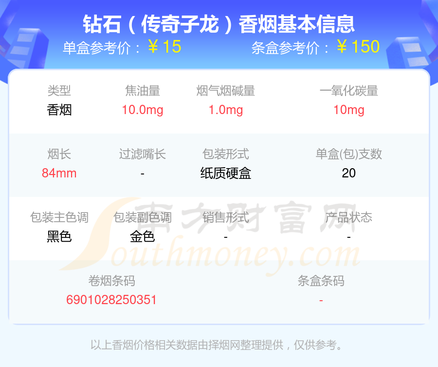 以上香烟数据整理于网络,请自行核实相关内容,因此所引起的后果与本站无关。