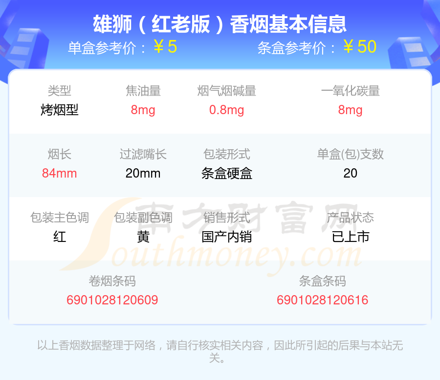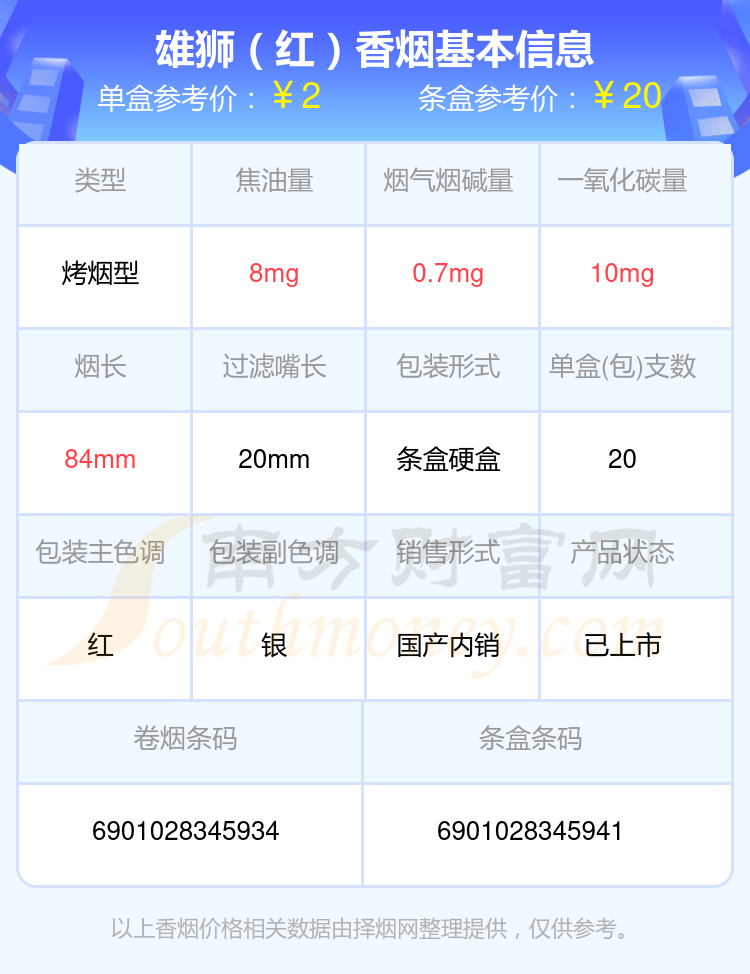 尼古丁1mg以下的雄狮香烟有哪些?择烟网为大家整理盘点,分别有:
