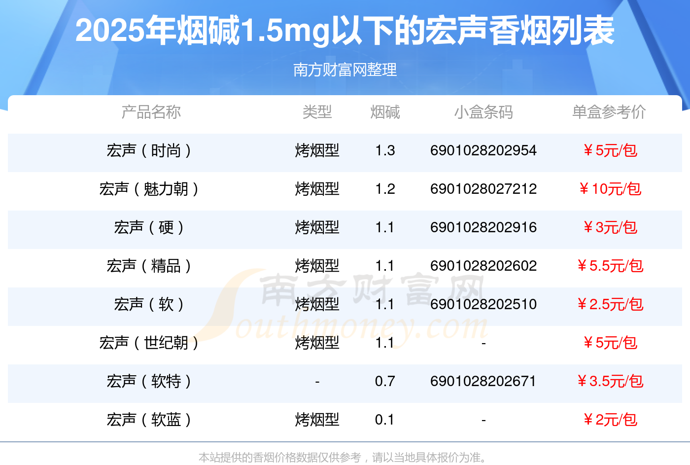 烟碱1.5mg以下的宏声香烟有哪些?择烟网为大家整理盘点,分别有: