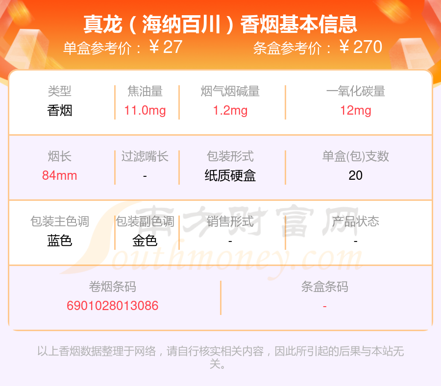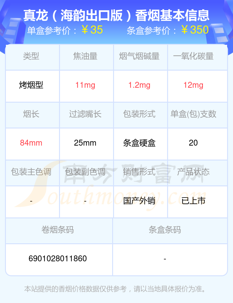 本站提供的香烟价格数据仅供参考,请以当地具体报价为准。