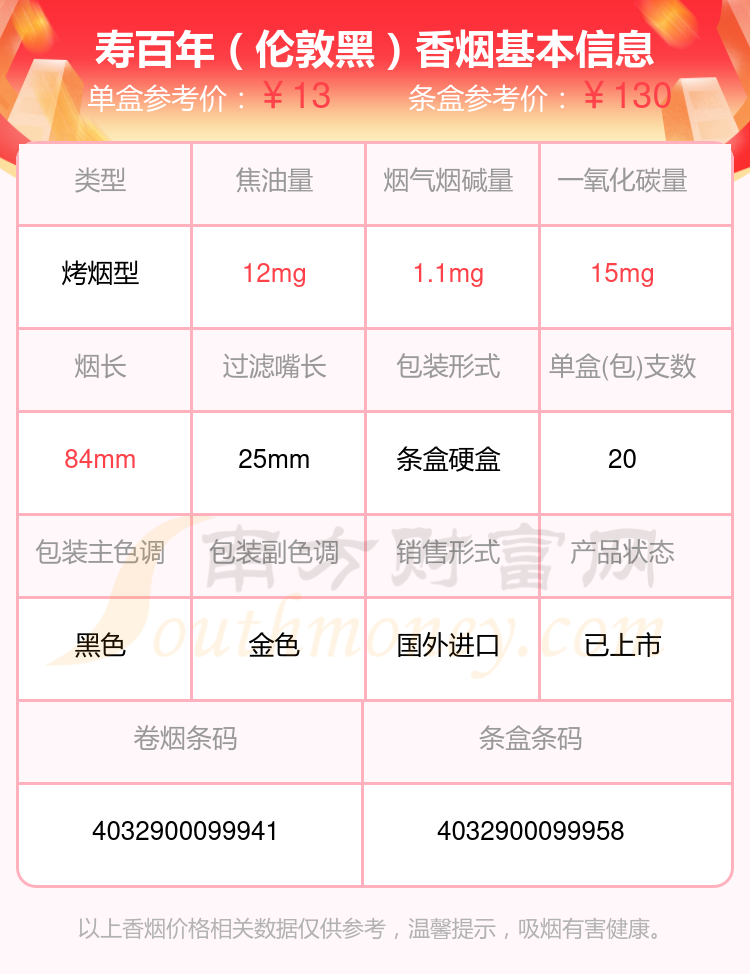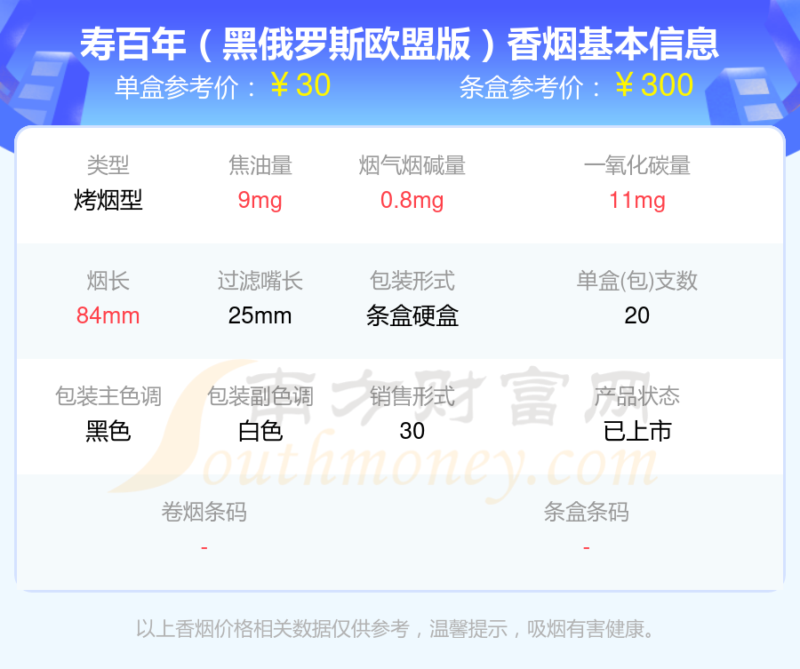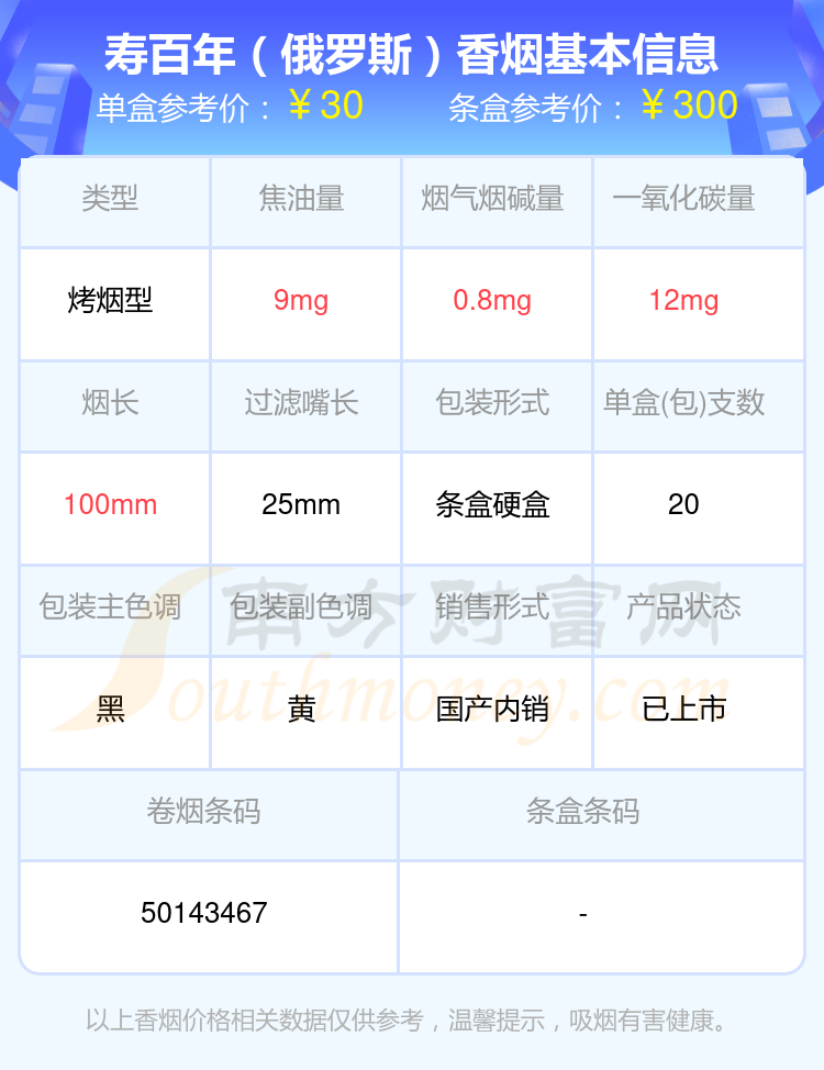 SOBRANIE(寿百年)香烟烟碱低于1.5mg的烟有寿百年(伦敦黑)、寿百年(蓝经典)、寿百年(黑俄罗斯)、寿百年(黑俄罗斯欧盟版)、寿百年(俄罗斯)、寿百年(鸡尾酒)、寿百年(黑俄罗斯)俄罗斯加税版、寿百年(银经典)、寿百年(经典银)、寿百年(名仕)等,具体价格如下: