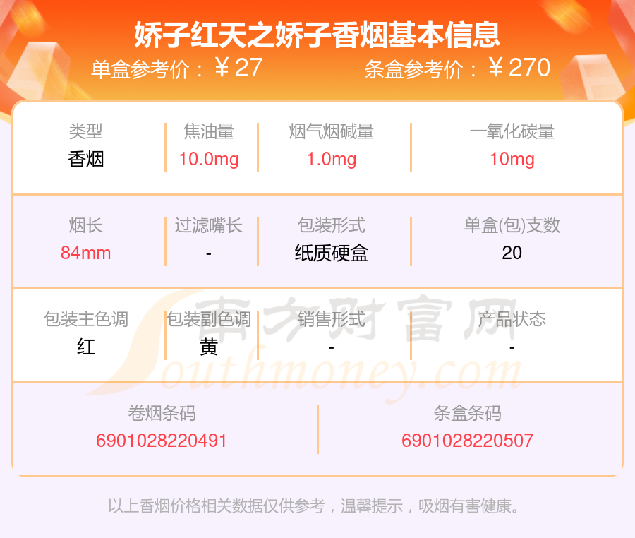 娇子红天之娇子条盒参考价:270元