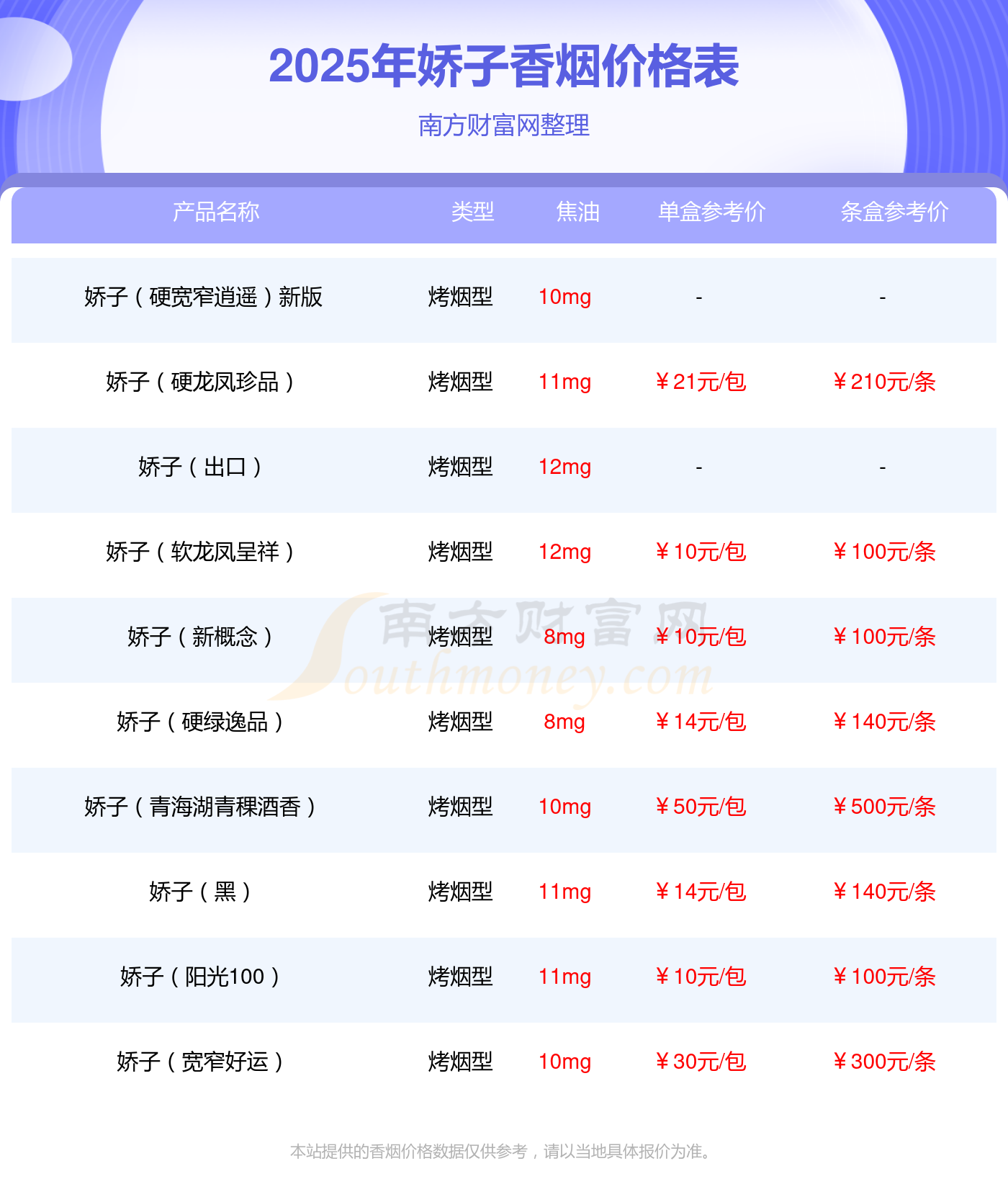 本站提供的香烟价格数据仅供参考,请以当地具体报价为准。