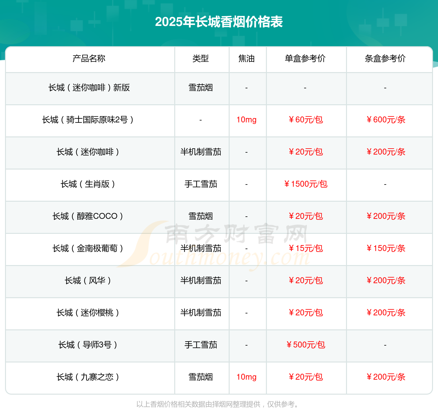 以上香烟价格相关数据仅供参考,温馨提示,吸烟有害健康。