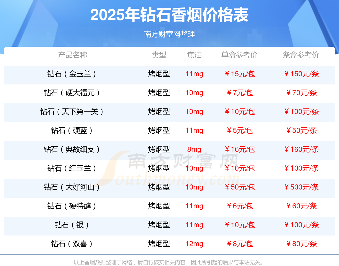 以上香烟价格相关数据仅供参考,温馨提示,吸烟有害健康。
