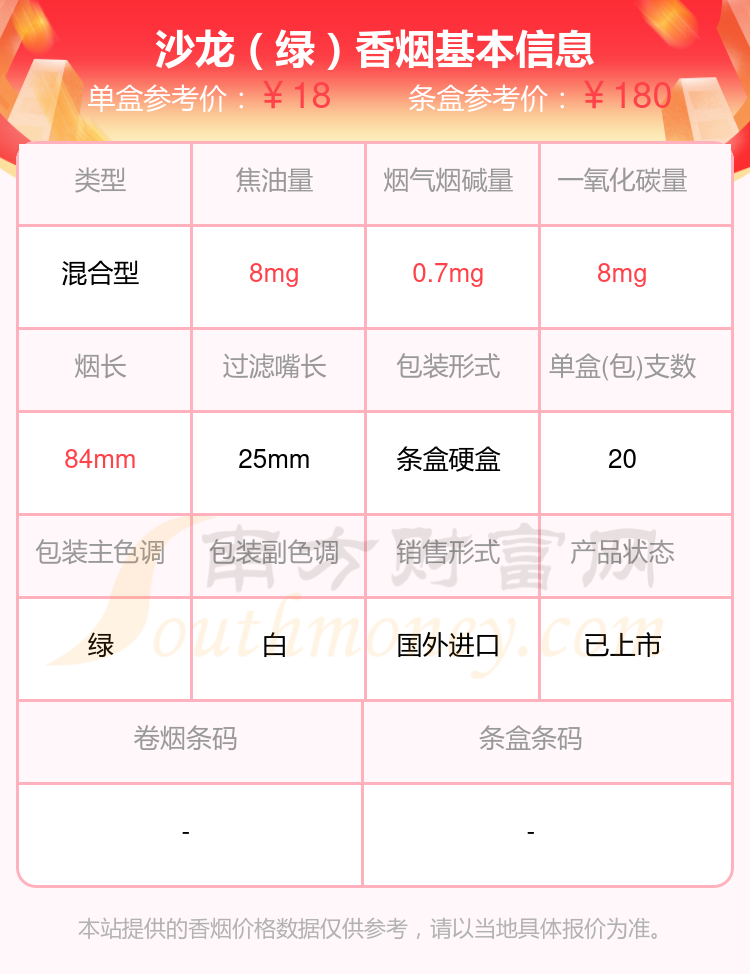 本站提供的香烟价格数据仅供参考,请以当地具体报价为准。