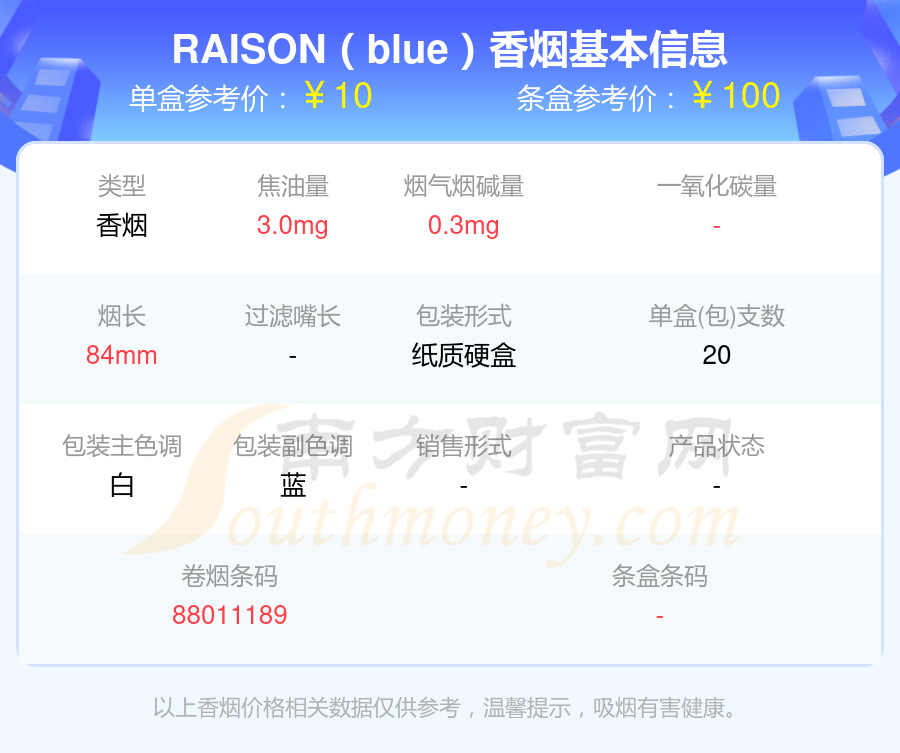 RAISON(red)参考价8元/包、RAISON(blue)参考价10.0元/包等。
