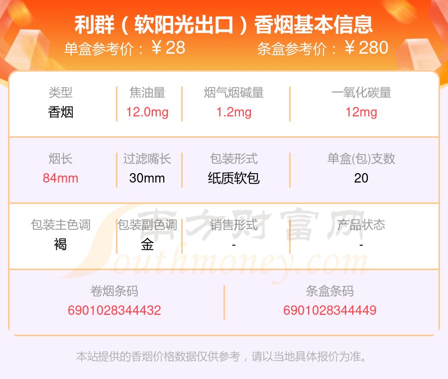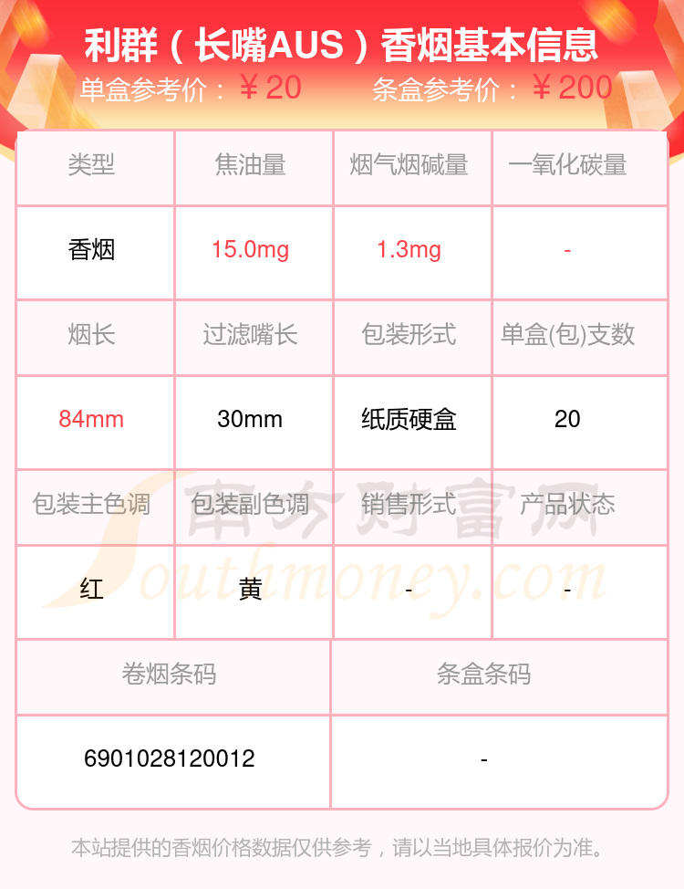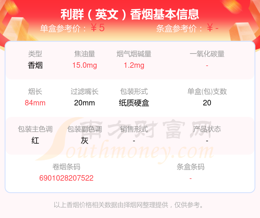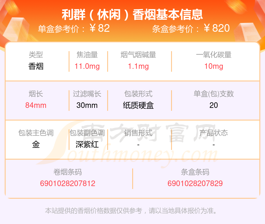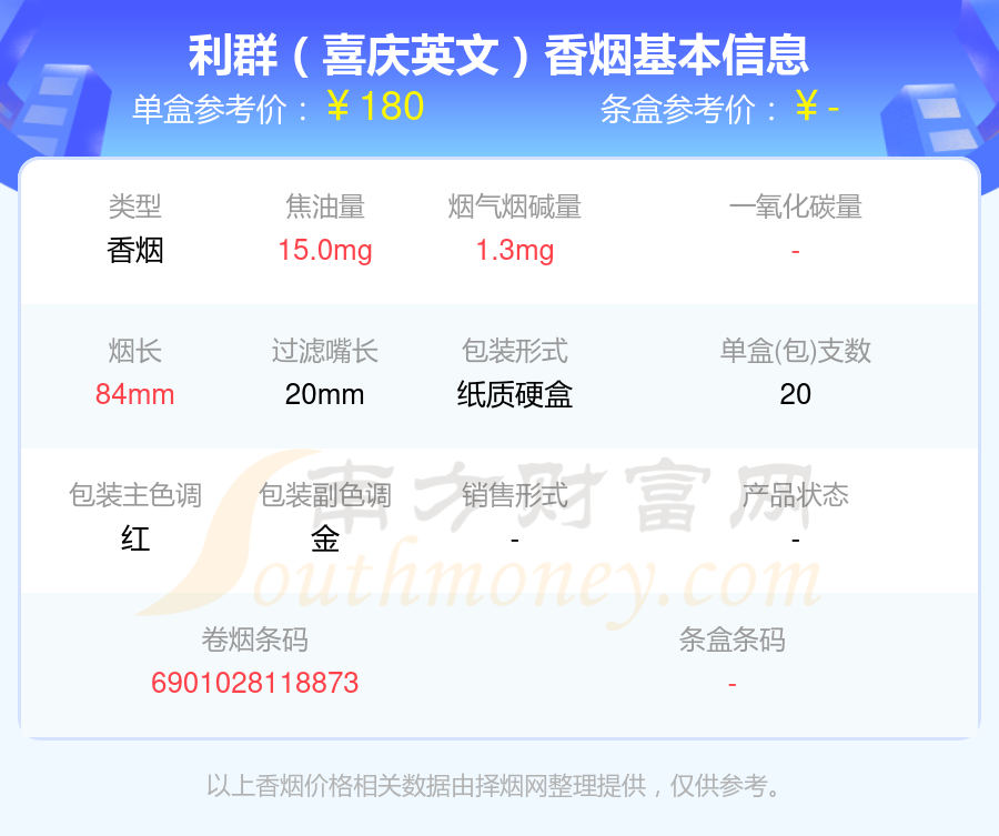 本站提供的香烟价格数据仅供参考,请以当地具体报价为准。