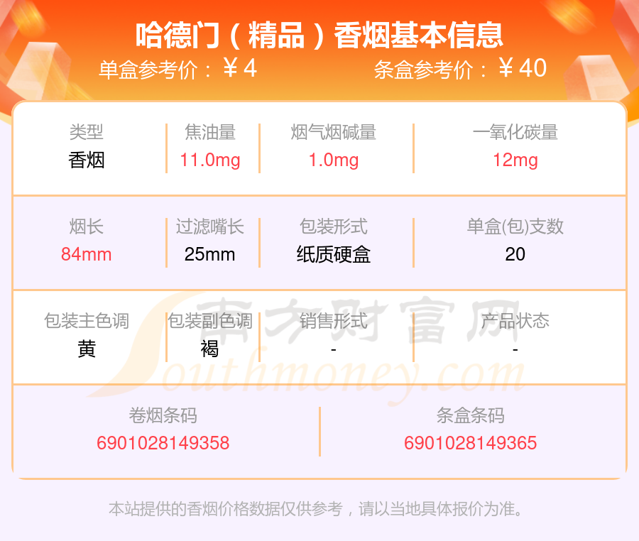 本站提供的香烟价格数据仅供参考,请以当地具体报价为准。