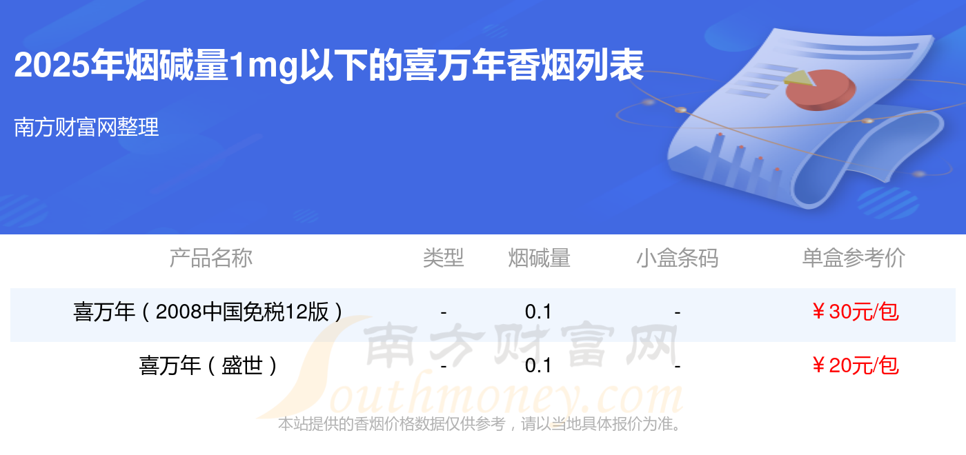 烟碱量1mg以下的喜万年香烟2025查询一览